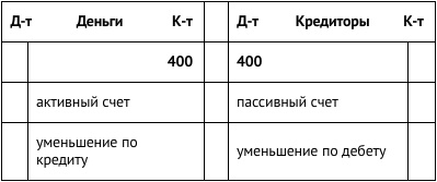 3. Уменьшение активного счета может быть рассмотрено как отрицательный дебет, что равносильно кредиту. А уменьшение пассивного счета может быть рассмотрено как отрицательный кредит, что равносильно дебету.