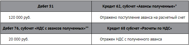 Предположим, что покупатели перечислили на расчетный счет ЗАО аванс в размере 120 000 руб. (в том числе НДС 20 000 руб.) в сентябре и оплатили оставшуюся сумму в декабре текущего года.