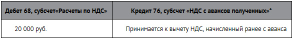* Поскольку НДС, начисленный и уплаченный ранее с аванса, принимается к вычету, реальное дополнительное обязательство ЗАО по НДС в ноябре составит 20 000 руб. (40 000 20 000).
