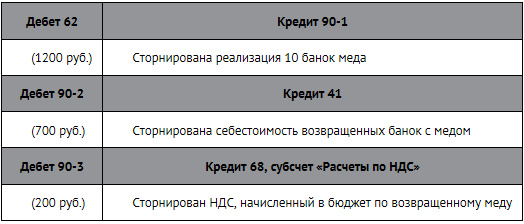 В ноябре текущего года ЗАО «Винни-Пятачок» отгрузило ОАО «Осел Иа» 100 банок с медом стоимостью 12 000 руб. (в том числе НДС 2000 руб.). Себестоимость одной банки меда составляет 70 руб. В декабре компания «Осел Иа» вернула 10 банок.