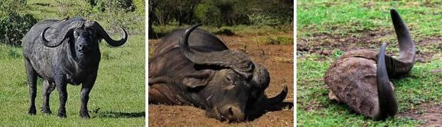 Я ведь упоминал уже, кажется, что бушмены на буйволов вообще не охотятся? Слишком толстая и крепкая кожа для их слабых деревянных луков, а не пробив её, не даст никакого эффекта и отравленная стрела. Есть, конечно, у африканского буйвола места, где даже его кожа потоньше, да помягче, но чтобы уверенно попасть в них, это надо поближе к нему подобраться, и как тогда от него спастись самому? Яд ведь не сразу на такую тушу подействует, и разъярённый бык десять раз успеет стоптать или поднять на рога и стрелка, и кого-нибудь из его спутников - себе дороже выйдет такая охота. Добычи в саванне и без буйволов бушменам хватает - тех же мелких антилоп во много раз больше, так что нет им необходимости рисковать. Ради мяса, по крайней мере. Крепкая буйволиная кожа - другое дело, но какие-то её лоскуты и после львиных трапез остаются. Практически без риска их можно подобрать, если выждать, но уж больно мало. Поэтому цельная буйволовая шкура для бушменов немалое богатство.