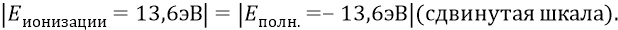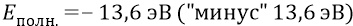 Это значит, что для того чтобы ионизировать водород, то есть оторвать от него электрон, надо к этому электрону, а следовательно к атому, приложить энергию («плюсовую»), равную этой полной энергии атома, и тогда энергия атома (фактически разорванного на две части) будет нулевой: