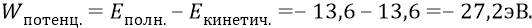 А это значит, что потенциальная энергия атома с электроном, кружащим по первой боровской орбите, равна: