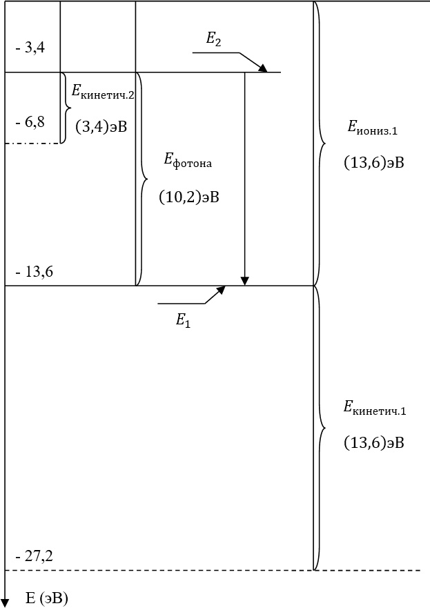 Здесь мы обратим особое внимание школьника на то, что такой переход (21) может случиться так называемым «без излучательным» (типа 2S11S1). Для того чтобы переход был «без излучательным», электрон орбиты 2 надо затормозить лишь «чуть-чуть», то есть тормозящий квант энергии должен быть очень малым, значительно меньшим величины одного электронвольта. То есть его энергии должно хватить лишь на то, чтобы выбить электрон с «орбитальной подставки», какая действует для каждой конкретной стационарной орбиты, причём для каждой своя по величине. О механизме «подставки» мы где-то упоминали в одной из глав второго тома Философии.