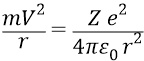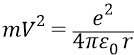 Теперь мы специально обратим внимание школьника на тот рубеж, на котором Нильс Бор отошёл от классического пути исследования атома в сторону чисто энергетического пути, где уже отсутствовали силы, орбиты и скорости электронов. Бор начинает свои выводы сначала с классики, а именно, со сравнения сил, действующих на электрон на стационарной орбите. Он приравнивает центростремительную силу, действующую на орбитальный электрон (с точки зрения классической механики движения тела массой m по окружности), с силой Кулона, действующей на этот же электрон (с точки зрения электростатики):