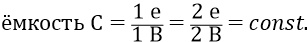 Ёмкость определяется только конструкцией «конденсатора» (атома) и размерами его обкладок (размерами орбиты). Так, первая боровская орбита обладает ёмкостью, которую мы уже вычисляли: