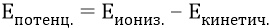 Энергия ионизации равна работе внешних сил против силы поля ядра (отрицательный заряд не приближается к ядру с помощью «положительной», в таком случае, работы поля ядра, но он удаляется от плюса ядра сторонними силами, совершающими «отрицательную» работу). Поэтому: