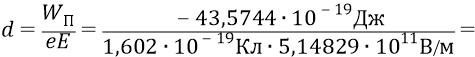 Но тогда то расстояние d, на которое был перемещён заряд электрона для того, чтобы поместить его в потенциал (27,2 В), определится следующим образом: