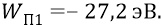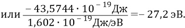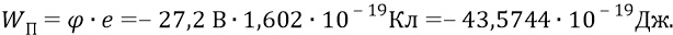 если потенциал поля первой орбиты равен (27,2 В), то потенциальная энергия атомной системы с электроном в ней на первой орбите равна