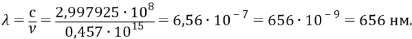 Здесь значащие цифры с 4-ой по 6-ю (656,285 на самом деле) «затерялись» из-за округлённых первоначальных уровней энергий (1,51 и 3,4) эВ.