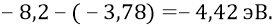Но квантовая физика говорит о том, что теория квантовой механики «думает», что энергия перехода 1,89 эВ принадлежит полной длине волны 656 нм, тогда как мы утверждаем, что энергия 1,89 эВ принадлежит только полуволне (положительной или отрицательной) полной длины волны 656 нм. Это значит, что фотону полной длины волны 656 нм соответствует энергия двух «порций энергии» по 1,89 эВ каждая, то есть энергия 3,78 эВ. И поэтому сейчас среди нашего «частокола» уровней атомных «полочек» (как сказал бы Нильс Бор) мы поищем ту «полочку», которая давала бы такой дискрет энергии по отношению к уровню нашей «полочки» второго атомного уровня «8,2 эВ»: