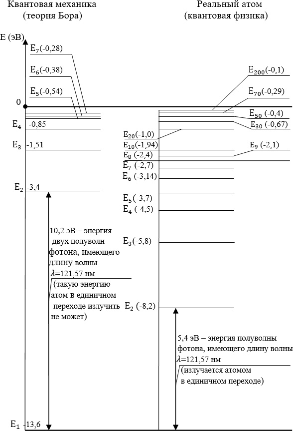 Но как же вы, с вашей «квантовой физикой», сможете объяснить столетний опыт спектроскопии, досконально изучившей всевозможные переходы электрона в атоме водорода, с многочисленными сериями Лаймана, Бальмера, Пашена, Брекета, Пфунда, Хампфри, с длинами волн в этих сериях, совпадающими с теорией Бора с точностью до пяти значащих цифр? спросит нас с улыбкой превосходства скептически настроенный физик-квантовомеханик.