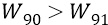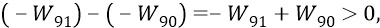 потому что по абсолютной величине (по числовому значению) энергия , как энергия более «глубокого» уровня (орбита n = 90 расположена ближе к ядру, чем орбита n = 91, и её потенциальная энергия по абсолютной величине больше потенциальной энергии орбиты n = 91, а полная энергия равна по модулю половине потенциальной).