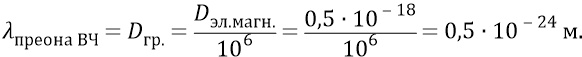 Принимая размер гравитационного кванта меньшим размера электромагнитного кванта в раз (в первом приближении), найдём диаметр гравитационного кванта, на котором преоны высокочастотного уровня вакуума делают полный оборот, «рисуя» на этом диаметре длину волны преона: