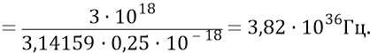 Доверимся нашей фундаментальной формуле и попробуем оценить частоту вращения такой фантастической частицы: