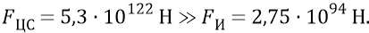 Мы получили результат, который не только противоречит опыту физиков, говорящему о том, что в состоянии «сейчас» Вселенная продолжает расширяться (и мы полностью согласны с этим выводом), но получили слишком большую разницу в целых 28 порядков величины сил, которая никак не вяжется со здравым смыслом, хотя эти цифры получены из довольно реалистичных оценок в соотношениях «видимой» физикам Вселенной. Цифры же говорят о том, что гигантское превышение центростремительной силы над силой инерции обязано было бы не только уже давно остановить расширение Вселенной, но должно было тянуть Вселенную вспять со страшной силой.