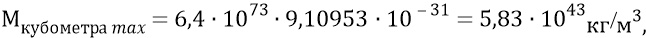 Тогда максимальная масса только что родившихся электромагнитных частиц в объёме одного первичного кубометра будет: