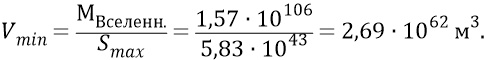 Найдём теперь минимальный объём первичного электромагнитного вещества в первичной Эфирке Вселенной: