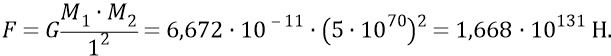 Оценим силу эфирного Жгута Большой Вселенной «на разрыв». Для этого найдём силу гравитационного притяжения двух «тонких-претонких» плоскостей эфира, прижатых друг к другу по плоскости сечения эфирного тела Вселенной, толщиной этих «плоскостей» в 1 метр каждая. То есть при площади сечения Тора Вселенной, равной минимальной грани куба Метагалактики