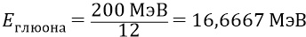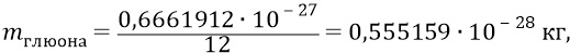 внутри конструкции нуклона действуют 6 пар глюонов (3 пары кварков «обстреливают» друг друга всего 12-ю глюонами). Следовательно, масса каждого из 12-ти глюонов составит величину: