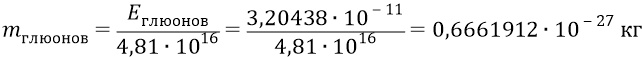 Тогда из нашей формулы для суммарной энергии глюонов найдём их ньютонову массу (чтобы никакой «безмассовостью» здесь не пахло):