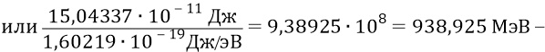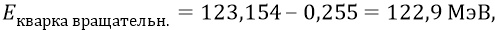 Но поскольку (с большой степенью точности, как мы уже упоминали выше) энергия поступательного движения кварка по орбите внутри нуклона равна 0,255 МэВ, то энергия вращательного движения кварка будет следующей: