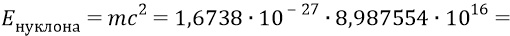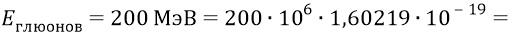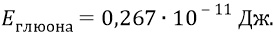 Выразим теперь суммарную энергию глюонов (в каждое данное мгновение времени находящихся в полёте внутри нуклона, жёстко взаимодействуя при этом попарно с каждыми двумя противоположными кварками и принимающими таким образом участие в общей инерции нуклона-частицы) в джоулях:
