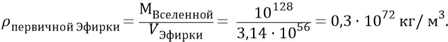 То есть здесь мы нашли пока ту массу Вселенной, которую она имела, если бы была сплошь заполнена только окраинным низкочастотным эфиром с его ранее рассчитанной нами плотностью тонких жгутиков ().