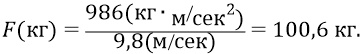 Если сравнивать эту силу с «весом» тел на поверхности Земли (они здесь подвергаются ускорению ), то сила «на разрыв» трубы-установки будет: