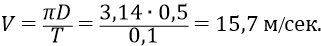 Найдём линейную скорость самой удалённой от центра вращения точки трубы-цилиндра, при угловой скорости вращения 10 оборотов в секунду