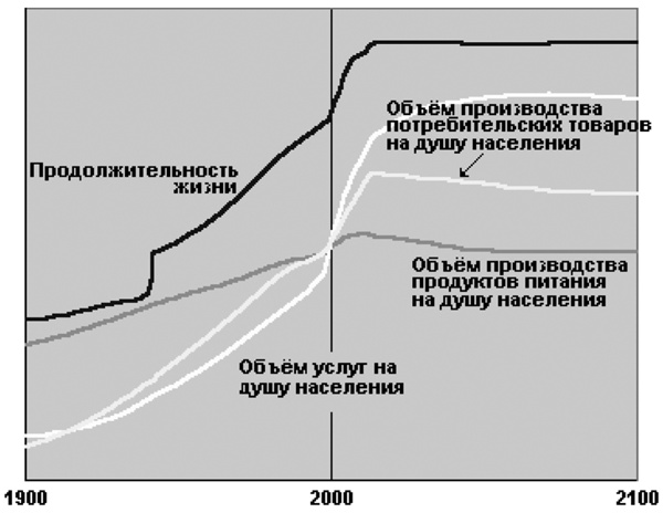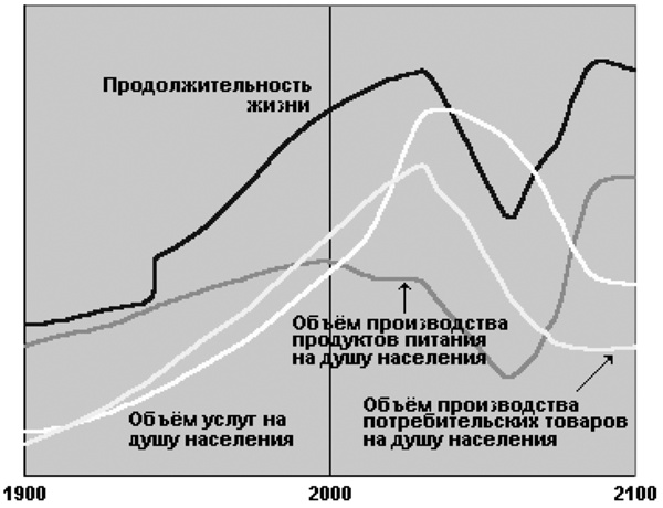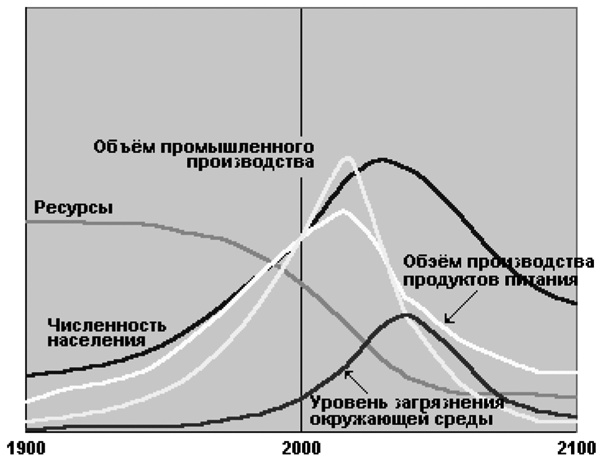 Реальное состояние мира к началу XXI века, все показатели, характеризующие это состояние и материальный уровень жизни жителей Земли за прошедшие годы, полностью подтверждают предсказания указанного сценария. Пока все индикаторы, как и предполагалось, находятся в стадии роста, но если и дальше мировое сообщество будет развиваться по этому сценарию, то после некоторого увеличения объемов в первые десятилетия XXI века уже в третьей декаде будущего столетия начнется резкое и крутое снижение всех показателей: к 2050 году они окажутся примерно на уровне 1950 года, а к 2100 году ниже уровня 1900 года. То есть цивилизация Земли к тому времени откатится назад на 200 лет.