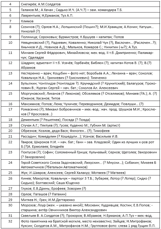 Возможно, кто-то из родных узнает на любительских снимках своих родных. Большая просьба ко всем, кто восстановит фамилии и имена солдат на снимках 19411945 годов, сообщить по адресу paraartiada@yandex.ru. Хорошо бы узнать и назвать всех солдат поимённо. Спешите: время беспощадно-стремительно несётся в безграничность! Ведь солдаты, освободившие мир от коричневой чумы, не были безымянными. Они кровью своей вписали страницы истории Родины в общую историю мира и подписали их! Вернём их имена!