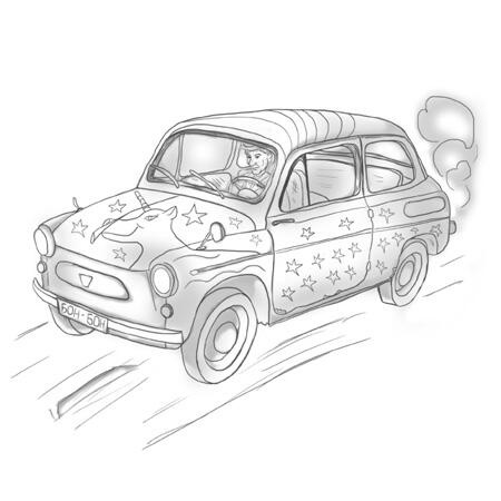 В то время как водитель оценивал состояние «Нивы», Милош собирал свои иллюстрации. От скачков и резкого торможения из открытого рюкзака художника под сиденье выпало несколько рисунков. Милош стал аккуратно подбирать листы, стараясь разложить иллюстрации по папкам, каждая из которых соответствовала определённой стране.