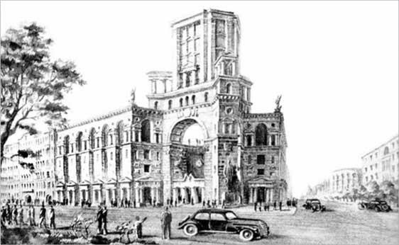 Проект здания Управления Ленинградского метрополитена и станции «Горьковская». 1944 г.