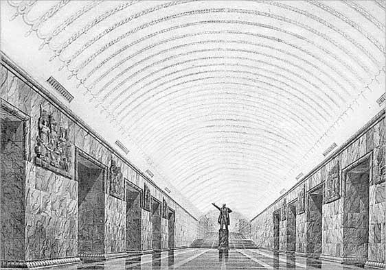 Проект станции «Площадь Восстания» В. В. Ганкевич и Б. Н. Журавлева. 1948 г.