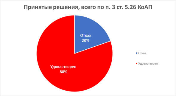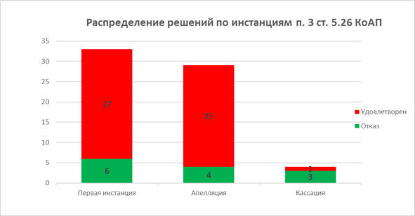 Диаграмма 7. Распределение решений по инстанциям. Пункт 3 ст. 5.26 КоАП