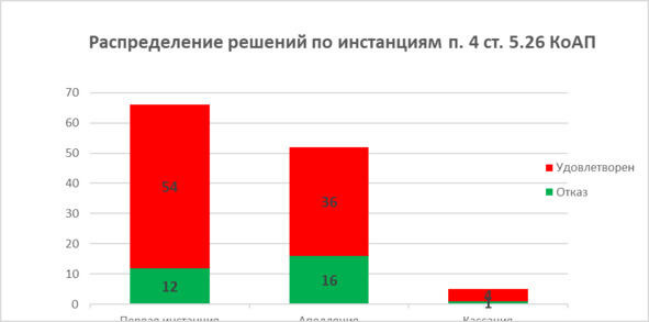 Диаграмма 10. Распределение решений по инстанциям. Пункт 4 ст. 5.26 КоАП