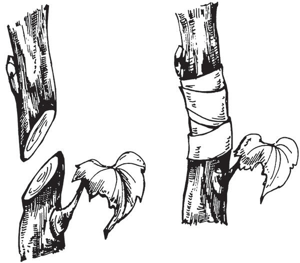 Еще одна зеленая прививка, практикуемая виноградарями-любителями, простая копулировка (рис. 23). От прививки врасщеп ее отличает то, что срезы на одинаковых по диаметру подвое и привое делают косыми. Последовательность действий та же.