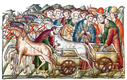 Начальник дома Иосифа находит у братьев его в мешке с зерном серебряную чашу. Бытие, гл. 44