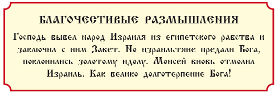 I. Люди становятся маловерными и иногда даже перестают верить в Бога не от того, что не чувствуют любовь Божию. Израильтяне много раз видели проявления Божественного могущества и милости, и это не помешало им бесстыдно поклониться золотому тельцу.
