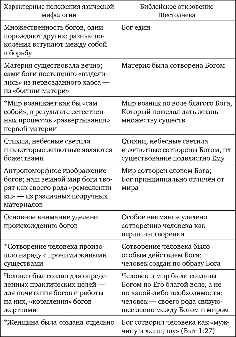 Сравнение библейского откровения о сотворении мира с основными чертами языческих мифологий[58]