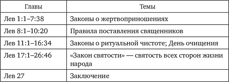 Книга Левит, находящаяся в центре Пятикнижия, представляет собой сборник правил и установлений, в первую очередь служащих руководством для израильских священников. При этом большинство заповедей книги обращены ко всем членам народа Божия[249]. Считается, что эти установления были записаны Моисеем во время его второго пребывания на горе Синай. Стержнем книги является неоднократно звучащая в ней заповедь: «Святы будьте, ибо свят Я, Господь Бог ваш» (Лев 19:2). Книга Левит может быть по праву названа «книгой о святости»[250].