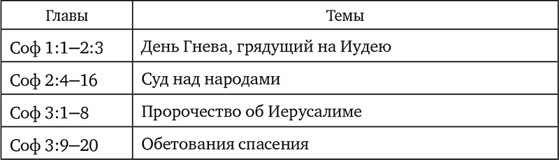 Книга пророка Софонии состоит из трех глав, в ней можно выделить четыре части.