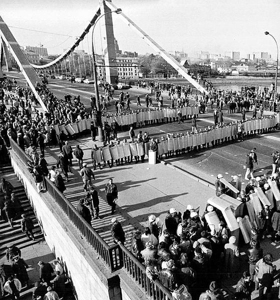 Крымский мост в Москве. Прорыв демонстрантов к Белому дому 3 октября 1993 года. Фотография предоставлена Ельцин Центром