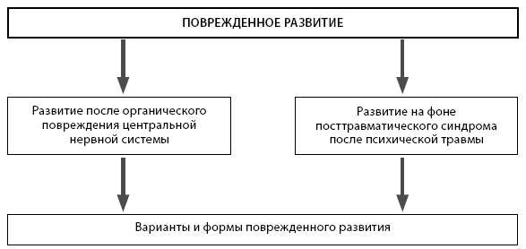 При наличии у детей психической травмы можно говорить о непосредственном повреждении системы аффективной организации, и потому такие дети выделяются в особую подгруппу поврежденного развития.