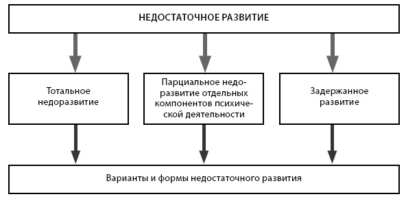 Можно выделить три вида недостаточного развития, различающихся как по характеру, так и по выраженности нарушений (рис. 2.2):