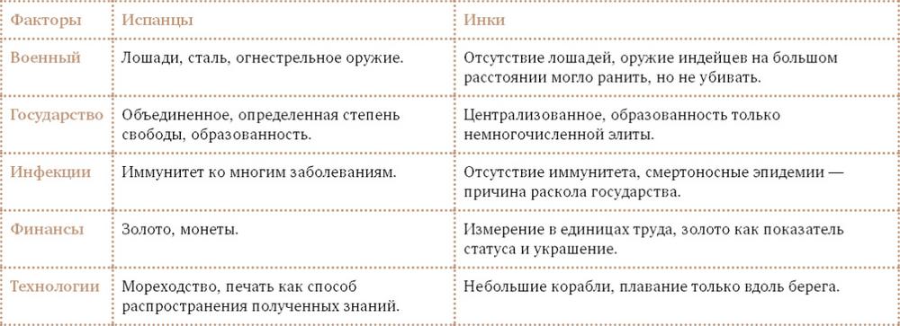 Таблица 5. Ключевые факторы, которые позволили испанцам одержать победу над инками в 1532 г.