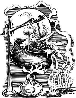 Министр магии долго готовился, прежде чем приступить к делу. Он нашёл в подвале замка чугунный котелок и не без труда добыл необходимые для зелья ингредиенты.