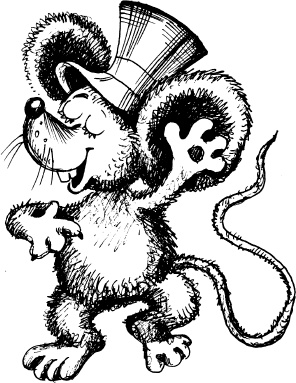 Придерживая на голове блестящую шляпу-цилиндр мышиного цвета, Мишель вскарабкался на стул, а затем перебрался на учительский стол и уселся на раскрытом классном журнале, свесив лапы со стола вниз.