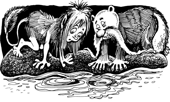 Бяка и ухарь долго неслись по узким проходам, через залы, и сонные летучие мыши бросались перед ними врассыпную. В одном из коридоров Аля сняла со стены факел, чтобы осветить путь себе и Вилли. Друзья пролезали сквозь узкие подземные ходы, переходили вброд ручьи, и вот, наконец, остановились на берегу подземного озера. Тихая гладь угольно-чёрной воды умиротворяла и манила неизвестностью, но запах сырости и прелой земли, странные шорохи, стуки и мрак навевали первобытный ужас. Что за чудовища обитают на дне подземного водоёма, что за звери прячутся в камнях?